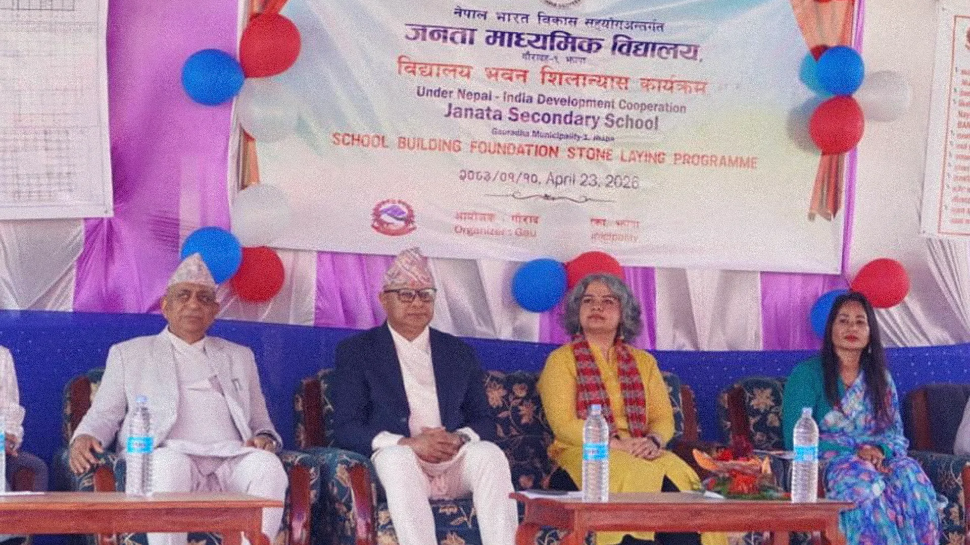 कोशी प्रदेश के झापा जिले में शिक्षा के स्तर को ऊपर उठाने के उद्देश्य से आज एक महत्वपूर्ण निर्माण कार्य की शुरुआत हुई। कोशी प्रदेश के मुख्यमंत्री हिक्मत कुमार कार्की ने गौरादह नगरपालिका-1 में श्री जनता माध्यमिक विद्यालय के भवन का आधिकारिक शिलान्यास किया। इस अवसर पर भारतीय दूतावास की काउंसलर गीतांजलि ब्रैंडन और गौरादह के मेयर छत्रपति सुबेदी भी विशेष रूप से उपस्थित रहे।